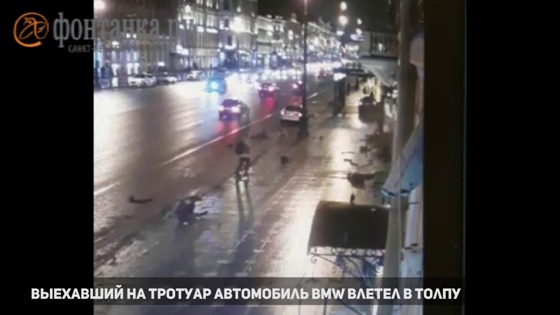 Петербургское издание «Фонтанка» опубликовало видео с места ДТП на Невском проспекте, где водитель BMW X6 насмерть сбил двух пешеходов на тротуаре. На записи видно, что один из пешеходов чудом успел отпрыгнуть из-под колес. Остальные среагировать не сумели, и иномарка сбила их на полной скорости. Проехав еще несколько метров, BMW выкатилась на проезжую часть. По данным «Фонтанки», помимо 40-летнего гражданина США Тодда Эшли Кровела, в ДТП погибла 38-летняя москвичка Евгения Корнеенкова. В пресс-службе МВД сообщили, что в больницах остаются три человека. Фото: «ДТП и ЧП Санкт-Петербург»/vk.com Против водителя BMW возбудили уголовное дело, его будет расследовать управление Следственного комитета по Санкт-Петербургу. Из сообщения СК следует, что до того, как выехать на тротуар, иномарка задела другой автомобиль, ехавший по Невскому. Сейчас владелец машины задержан. По данным «Фонтанки», это 30-летний житель Петербурга Мурад Касымов. Медикам он сказал, что до поездки был в баре на Думской линии и «подышал шарик», после чего потерял сознание за рулем.