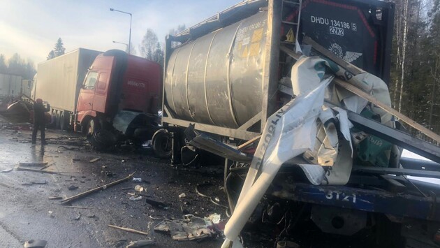В крупном ДТП на трассе в Тверской области дальнобойщик получил открытую черепно-мозговую травму