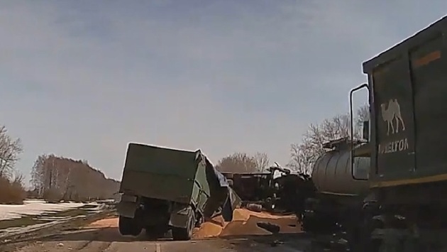 Регистратор очевидца запечатлел инцидент с участием нескольких грузовиков, произошедший днем в минувший четверг, 14 марта, на федеральной трассе Р-22 "Каспий" в Горшеченском районе Курской области. Как рассказали в пресс-службе регионального УМВД РФ, водитель КамАЗа предпринял неудачную попытку объезда грузовика MAN, остановившегося на обочине, после чего врезался во встречный Renault. Затем в припаркованный MAN влетел попутный грузовой DAF, в который, в свою очередь, въехал микроавтобус. К счастью, в результате инцидента никто не пострадал. Судя по кадрам ролика, снятого в первые мгновения после масштабного ДТП, транспортные средства, попавшие в аварию, полностью перекрыли проезжую часть. Сотрудникам полиции, прибывшим на месте ЧП, удалось организовать движение по одной из полос автодороги.