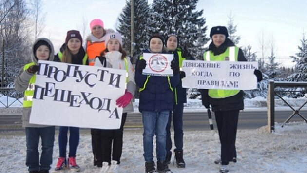 Фото Госавтоинспекции Карелии Активисты отряда Юных инспекторов дорожного движения Нововилговской школы подготовили плакаты, призывающие водителей автотранспортных средств заранее снижать скорость перед пешеходным переходом. Школьники встали живой стеной у пешеходного перехода, расположенного на участке федеральной автодороги «Кола», проходящей по деревне Вилга. Тематическую инсталляцию дети посвятили своей однокласснице, 13-летней школьнице, в ноябре прошлого года трагически погибшей в ДТП при переходе проезжей части по нерегулируемому пешеходному переходу. ЮИДовцы обратились к водителям с призывами соблюдать Правила при проезде пешеходных переходов, снижать скорость и пропускать пешеходов. Издалека, обратив внимание на оживление в районе пешеходного перехода, водители заблаговременно снижали скорость движения, и проезжая, приветствовали участников акции звуковым сигналом. Дети уверены, что их работа привлекла внимание водителей к проблеме на пешеходных переходах. И они обязательно вспомнят, заметив дорожный знак, предупреждающий приближение к пешеходному переходу, что необходимо сбавить скорость.
