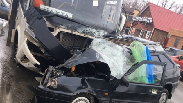 Легковушку вынесло на встречную полосу под вахтовый автобус ПАЗ. Смертельная авария в областном центре случилась утром воскресенья, 17 марта. Около Южного моста в Куйбышевском районе города ВАЗ-2114 выехал на встречную полосу. Там в это время двигался вахтовый автобус. Его сильный удар пришелся в район передней пассажирской двери. Легковушка превратилась в груду металла: у нее полностью смяло правую часть капота и выбило лобовое стекло. Два человека, находившиеся в ВАЗ-2114, скончались на месте аварии. Правоохранители выясняют личности погибших и уточняют подробные обостоятельства ДТП, сообщает референт отделения информации ГУ МВД России по Самарской области Людмила Солдатова. В областном главке напомнили автолюбителям о необходимости соблюдения скоростного режима и правил ПДД на дорогах. Фото: Игорь Захаров