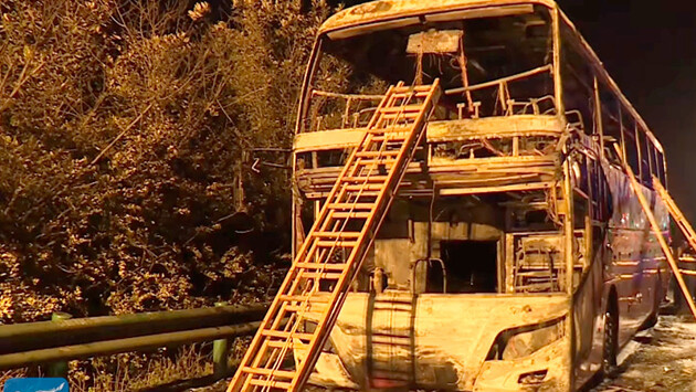 Пожар в туристическом автобусе на автотрассе в Китае привел к гибели 26 человек (ФОТО, ВИДЕО)