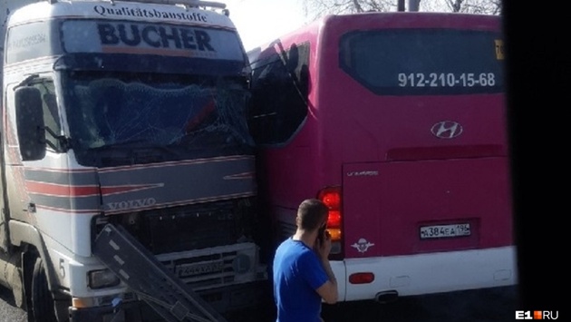 Сегодня днем в автобус, ехавший по маршруту Асбест — Екатеринбург, врезалась фура. Столкновение произошло в поселке Белоярский. — Нам горел зеленый свет, как я поняла, — рассказала E1.RU Авелина, пассажирка автобуса. — Я с двухлетней дочкой ехала с правой стороны. Фуру, которая врезалась в наш автобус, подрезала машина, водитель пытался уйти от столкновения, затормозил, и его повело, он въехал в автобус. Удар пришелся на левую сторону. Водитель автобуса тоже пытался избежать столкновения, он правой стороной снес дорожные знаки, ограждения. Все стекла выбило в автобусе. В итоге пассажиры могли выйти только через заднюю дверь, которая осталась незаблокированной. — Стекла разлетелись, кто-то поранился, в автобусе в основном ехали люди в возрасте, сильно испугались, — добавила Авелина. — Девушка сидела на месте, куда как раз удар пришелся. Я не знаю, что с ней, она, наверное, в шоке была, когда я уходила, она так и сидела там. У водителя было лицо в крови, я спросила, нужна ли ему помощь, но так как вокруг было много людей, а я с маленьким ребенком, постаралась поскорее уйти оттуда. Пассажиров почти сразу после ДТП забрал автобус Сухой Лог — Екатеринбург. Как сообщили в ГИБДД, в аварии никто не пострадал. В салоне автобуса находились 15 человек. — Водитель грузового автомобиля, уходя от столкновения с впереди остановившейся «Газелью», выехал на полосу встречного движения и допустил столкновение с автобусом, — сообщили в ГИБДД. — Сейчас сотрудники Госавтоинспекции на месте происшествия регулируют дорожное движение. Недавно в Полевском пассажирский автобус из-за лихача на легковушке врезался в заправку.