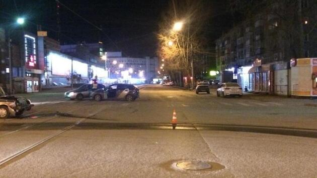 Патрульная машина не поделила дорогу с такси на Ватутина