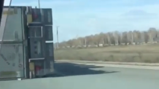В Сеть выложили запись с опрокинувшейся фурой в Пензенской области