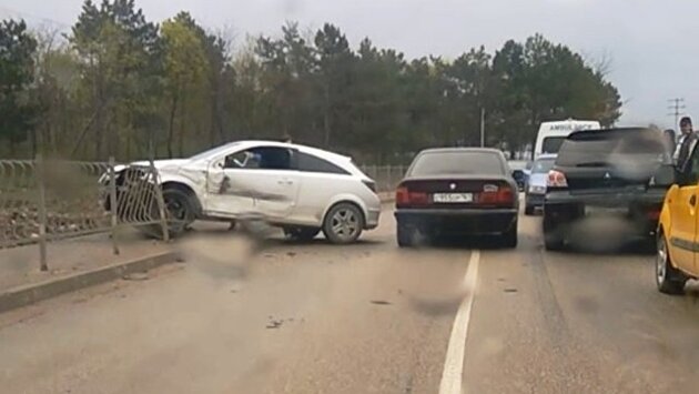 В Симферополе после ДТП иномарка снесла забор: движение затруднено