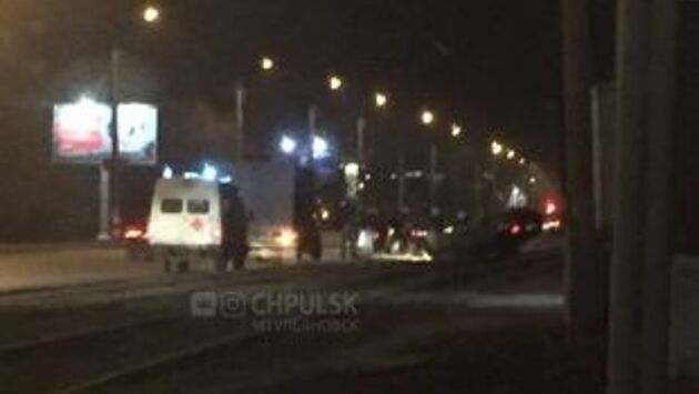 На трамвайных путях в Ульяновске среди ночи перевернулся автомобиль