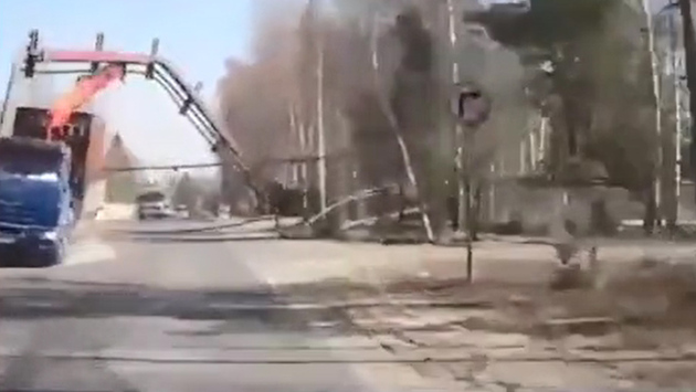 В Нижегородской области грузовик манипулятором задел металлическую конструкцию над дорогой и обрушил ее на дорогу — "КамАз" оказался слишком высок. Инцидент произошел в Сарове еще 19 апреля, однако видео происшествия было опубликовано очевидцем спустя пару дней. Конструкция рухнула на дорогу совсем рядом с легковым автомобилем, двигающимся навстречу грузовику. По словам местных жителей, повреждены были металлический каркас и трубы, ведущие в знаменитый саровский институт лазерно-физических исследований. В результате инцидента никто не пострадал.