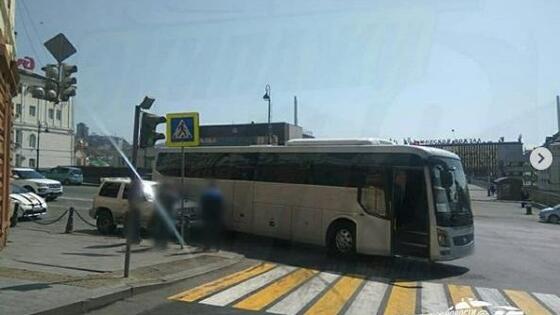 Во Владивостоке произошло ДТП с участием туристического автобуса, сообщает PRIMPRESS со ссылкой на Instagram-сообщество dps_vl. Это случилось в районе улицы 1-я Морская, 2. По предварительным данным, при повороте направо автобус зажал автомобиль марки Mitsubishi Pajero. От удара у иномарки отлетел бампер и была «примята» левая боковая часть корпуса. По словам очевидцев, это стало причиной пробки на данном участке дороги. На место автоаварии прибыли сотрудники ДПС. О пострадавших не сообщается. Устанавливаются обстоятельства проишествия.