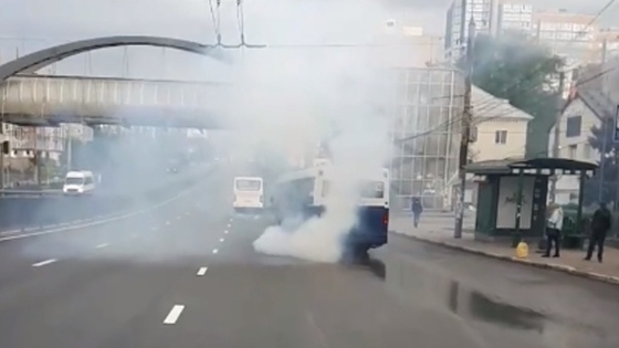 В Воронеже на Московском проспекте сняли автобус, дымящий на всю улицу. Ехать за ним транспорту сложно, потому что ничего не видно вокруг. Горожане заметили, что едущий маршрутный автобус больше похож на ракету, готовящуюся ко взлету. «Как такой автобус на маршрут выпустили?!», - возмутились местные жители. Понимающие горожане предположили, что в двигателе сломалась турбина. Ездить на таком автобусе нельзя.