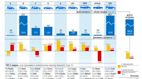 В России российские марки лидируют на вторичном авторынке, второе место у «японцев» Согласно данным исследования «Автостат Инфо», в объеме всех проданных за первый квартал подержанных автомобилей преобладают машины российских марок. Второе место по представленности получили японские модели, а третье — немецкие. Рейтинг подержанных SUV на автомобильном рынке Москвы За первый квартал 2019 года в России было реализовано 316 154 российских легковушек с пробегом. Они заняли на рынке б/у машин долю в 31,41%. В тот же период покупатели приобрели 204 098 б/у машин японских марок, что соответствует доле в 20,3% от всего объема перепроданных машин. Третий по величине продаж результат был зафиксирован в категории немецких авто — 144 193 таких машины было продано на рынке автомобилей с пробегом в первом квартале. Они заняли на рынке долю в 14,33%. Подержанных автомобилей корейских марок было продано в России в количестве 123 027 ед. за первый квартал этого года (доля — 12,22%). Объем перепродаж легковушек американских брендов составил 95 460 ед. (доля — 9,55). В отчетные январь-март 2019 года на вторичном авторынке страны было продано 56 440 б/у «французов» (доля — 5,6%), 20 509 подержанных машин чешских марок (доля — 2,04%), 16 825 б/у легковушек китайских брендов (1,67%), 9390 машин украинских марок с пробегом (0,93%), 8715 авто британских брендов (0,87%), 7481 шведских б/у автомобилей (0,74%), а также 2993 ед. итальянских авто (0,3%). Присоединяйтесь к нам на Фейсбуке, читайте наши новости на Яндекс.Дзен и подписывайтесь на наш канал