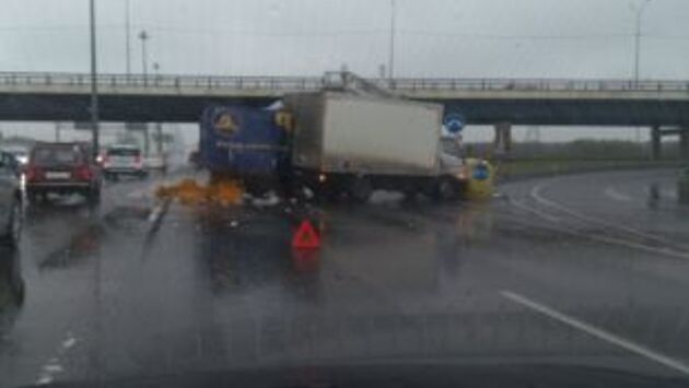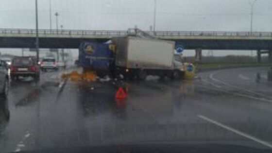 В результате тройного ДТП на Пулковском шоссе из грузовика рассыпался хлеб