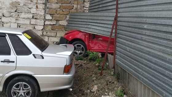 В Симферополе иномарка столкнулась с легковушкой и пробила забор