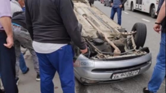 В Сочи трактор "в прямом эфире" перевернул легковушку на крышу