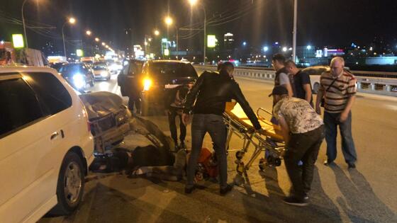 «Его раздавило между машинами»: очевидец рассказал подробности массового ДТП на Димитровском мосту