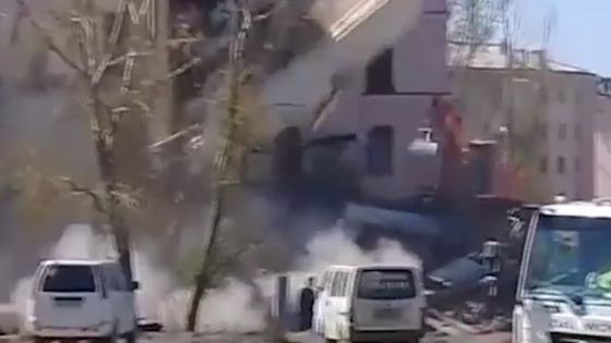 В Улан-Удэ при демонтаже школы на экскаватор рухнула стена. Видео