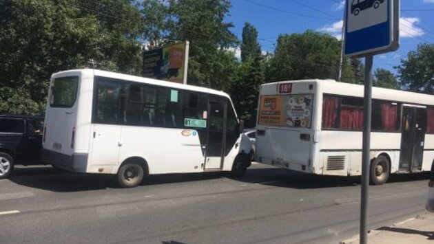 Столкновение автобусов заблокировало движение по проспекту 50 лет Октября