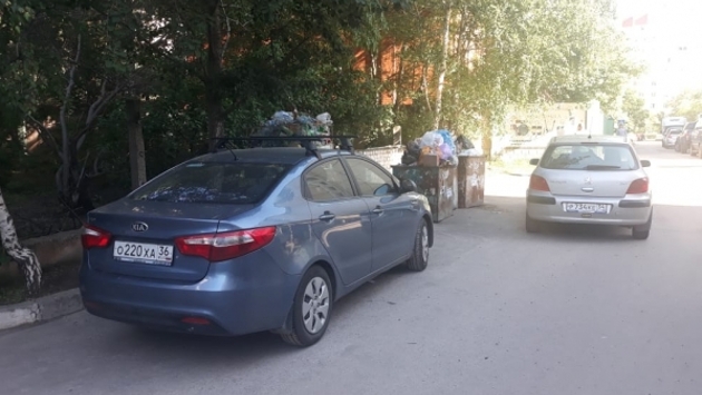 В Воронеже из-за припаркованных машин снова не смогли вывезти мусор