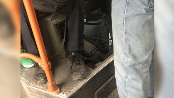 В Советском районе Новосибирска днём 27 мая на линию вышел автобус маршрута № 23 «Общественный торговый центр — ОРМЗ». Сообщение с фотографией разобранного пола в салоне автобуса появилось сегодня в группе «У нас на Шлюзе» в социальной сети «ВКонтакте». Муниципальный автобус с госномером МУ315 вышел на маршрут № 23. «Сегодня утром ехал на работу на 23-м. Обнаружил, что на полу лежит что-то и на нём стоят пассажиры. Подумал, что очередной "ремонт" пола сделали, но потом взгляд отвёл на подиум — площадка над двигательным отсеком, где расположены самые задние сиденья, — и увидел это (дырку в полу. — Прим. ред.). Потом присмотрелся на то, что на полу лежало, оказалось, это крышка. Никого [из пассажиров] ничего не волновало, только те, кто сидели на этих рядах, сжались по краям, чтобы не дай бог не попасть ногами туда», — рассказал корреспонденту НГС пассажир автобуса Владислав. В диспетчерской ПАТП-4 подтвердили, что автобус с таким номером работает на линии, но прокомментировать открытый пол в салоне не смогли. «Буду разбираться с ОТК (отделом технического контроля. — Прим. ред.) и эксплуатацией, почему такой [автобус] выпустили. Скорее всего, [он] был на ремонте, и люк на место не поставили. Так-то полы у нас исправные. Сейчас вызову начальника ОТК и буду проводить расследование», — заявил корреспонденту НГС и.о. директора ПАТП-4 Николай Плескун. 20 мая НГС рассказал об акции «Автобус», которую проводила новосибирская ГИБДД для выявления различных нарушений действующего законодательства при перевозках пассажиров.