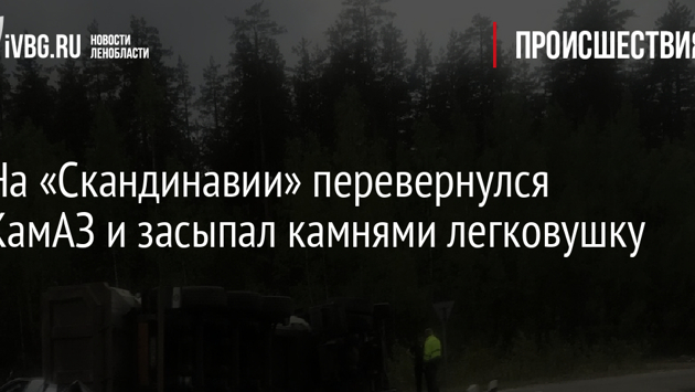 На трасса "Скандинавия" в Выборгской районе Ленинградской области превернулся КамАЗ и засыпал камнями легковую машину. Сегодня, 27 мая 2019 года, на "Скандинавии" около поворота на поселок Заходское Выборгского района Ленобласти произошло ДТП. В результате него перевернулся КамАЗ и засыпал камнями легковушку. Очевидцы сообщают, что пострадавших нет, бригада выехала на уборку щебня с дороги.