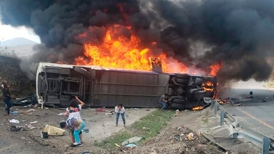 МЕХИКО, 30 мая. /ТАСС/. По меньшей мере пять человек погибли в четверг в столкновении грузовика с автобусом на трассе в штате Дуранго на северо-западе Мексики. Об этом сообщила в Twitter спасательная служба региона. "Зарегистрирована гибель пяти человек, идет операция по оказанию помощи пострадавшим", - говорится в записи. По предварительным данным, травмы получили более 20 пассажиров автобуса. Сведений о причинах ДТП обнародовано не было. В среду в штате Веракрус на юго-востоке Мексики трейлер врезался в автобус, перевозивший десятки людей. Жертвами автокатастрофы стал 21 человек, еще 30 пострадали.