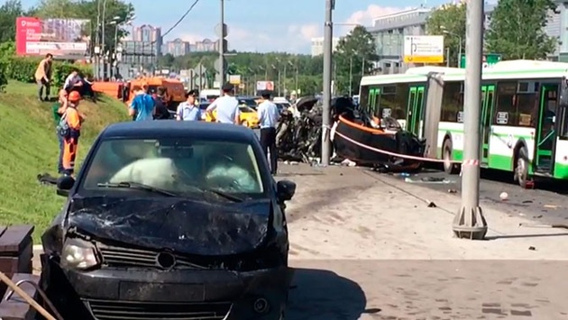 Автобус, опрокинутое авто, груда железа: кадры ДТП на Кутузовском