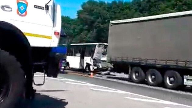 В воскресенье на 1049-м км трассы М4 "Дон" произошла авария с автобусом, следовавшим по маршруту Новочеркасск - Ростов-на-Дону. Автобус врезался в большегруз на пешеходном переходе, а затем столкнулся с еще двумя автомобилями. Пострадали 15 человек, 11 госпитализированы. Ранее сообщалось, что травмы получили девять человек. На момент ДТП в автобусе было 30 человек, передает ТАСС. Сообщение об аварии поступило в 13:30 по московскому времени. Автобус врезался в большегруз на переходе, а затем столкнулся с еще двумя автомобилями. Трое пострадавших доставлены в больницы скорой помощи города Новочеркасска, восемь человек - в центральную районную больницу Аксайского района. "Всем доставленным в лечебные учреждения в настоящее время проводятся необходимые лечебно-диагностические мероприятия. При необходимости в лечебные учреждения готовы выехать областные специалисты", - отметили в пресс-службе регионального Минздрава. "Предрейсовый осмотр автобус проходил, все было исправно, водитель трезвый, прошел медицинский контроль", - сказал журналистам директор ООО "Новочеркасские пассажирские перевозки" Константин Прилепа. Непострадавшие пассажиры автобуса, по его словам, отправлены в Ростов-на-Дону и Новочеркасск. Полиция проводит проверку после ДТП с участием автобуса в Аксайском районе, сообщили в пресс-службе регионального управления МВД.