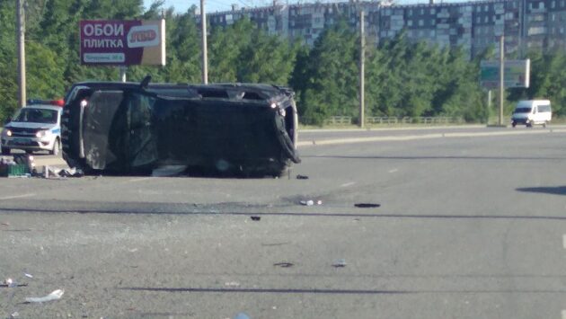 В Челябинске из-за столкновения внедорожник перевернулся на бок