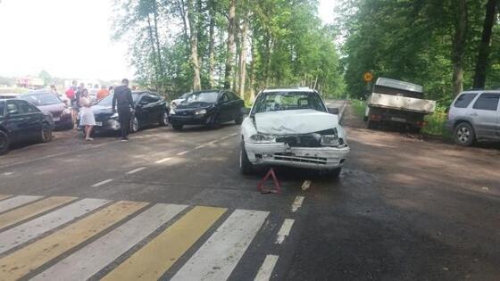 В Зеленоградском районе Hyundai врезался в легковушку и перевернулся, собирается пробка