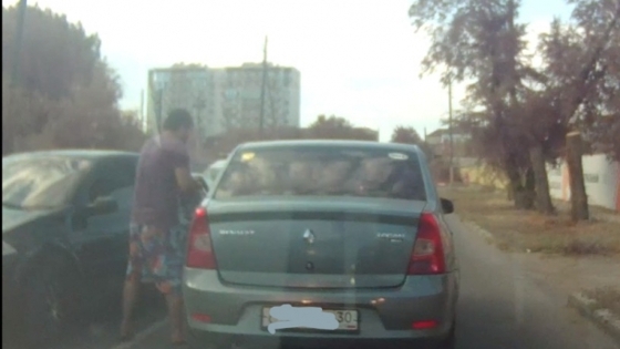В Астрахани наглый мужчина-водитель, ехавший по встречной полосе и грубо нарушивший правила дорожного движения, устроил разборки прямо на дороге с водителем иномарки "Рено Логан". О произошедшем дорожном инциденте сообщили очевидцы - участники сообщества "Аварии Астрахань".