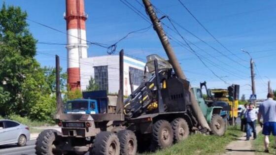 21 июня на улице Луганской в Кирове произошло ДТП. Фотографии происшествия выложили очевидцы в социальных сетях. По информации местных жителей, лесовоз врезался в опору ЛЭП, в результате чего столб повалился на бок. Из-за аварии на дороге образовалась большая пробка. На данный момент официальной информации о причинах аварии и пострадавших нет. Фото – vk.com