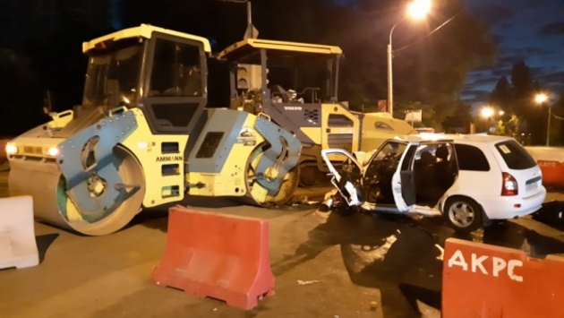 В Воронеже «Лада Калина» на скорости врезалась в дорожный каток: водитель погиб