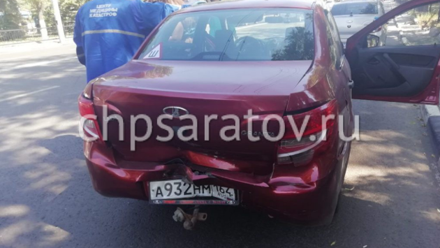 В Саратове на проспекте 50 лет Октября водитель "ВАЗ-2109" протаранил "Lada Granta". Пострадавшей в ДТП женщине оказали медицинскую помощь на месте. Сегодня, 21 июня, в Саратове произошло ДТП с участием двух отечественных легковушек. Как сообщает портал "ЧП-Саратов", водитель "ВАЗ-2109", не соблюдая дистанцию, врезался в автомобиль "Lada Granta" под управлением 35-летней автоледи. В результате дорожно-транспортного происшествия незначительные травмы получила женщина за рулём отечественной легковушки. Прибывшая на место происшествия бригада Центра медицины катастроф оказала пострадавшей помощь. от госпитализации женщина отказалась. Все обстоятельства аварии устанавливаются. Напомним, ранее в Заводском районе машина Росгвардии попала под грузовик. По предварительным сведениям, тяжело пострадавших в ДТП нет.