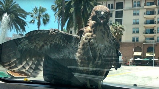 Пешеходы, встретившиеся на пути «ястребиного такси» с восторгом смотрели на крылатого хищника и фотографировали его. В центре Лос-Анджелеса находчивый ястреб решил бесплатно воспользоваться транспортом. Необычный «заяц» сильно удивил находящихся внутри автомобиля девушек, которые, несмотря на шок, тут же принялись снимать «пассажира» на видео. Ястреб упрямо катался вместе с ними по всему центру Лос-Анджелеса, несмотря на возгласы водителя и пассажира. Расправив крылья, гордая птица «летела» над улицами, сидя на капоте. Во время крутого поворота ястреб споткнулся, чем вызвал испуг женщин, но сумел сохранить равновесие. Пешеходы, встретившиеся на пути «ястребиного такси» с восторгом смотрели на крылатого хищника и фотографировали его. В конце концов, девушки настолько привыкли к необычному попутчику, что начали пытаться общаться с ним с помощью знаков. Ястреб неотрывно следил за движениями их рук, крутя головой в стороны. Через какое-то время ястреб покинул гостеприимных людей. Он оттолкнулся от машины и взлетел. Невольные попутчицы хищника обрадовались тому, что с ним все в порядке и он может летать, но остались глубоко озадачены случившимся. Видео поездки опубликовано на Youtube.