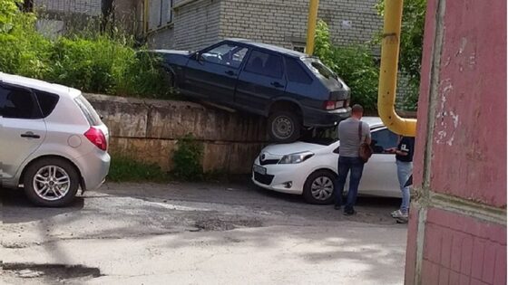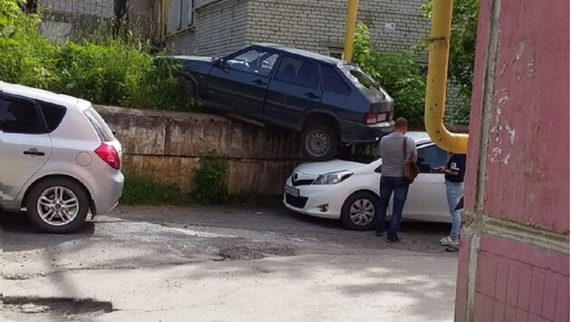 Жителей Златоуста удивило двухэтажное ДТП, произошедшее около дома №25 по улице Румянцева. Фотографии необычной аварии появились в местной группе в социальных сетях. На снимках видно, что черная машина марки ВАЗ оказалась на крыше белой иномарки. Пользователи предположили, что водитель отечественного авто просто забыл поставить транспортное средство на ручник. Машина могла сорваться на асфальт, однако была спасена стоящим автомобилем. Напомним, что на прошлых выходных в Кургане женщина также забыла поставить машину на ручник и чуть не улетела в реку Тобол. Фото превью: сообщество «ЧП Златоуст-Челябинск»