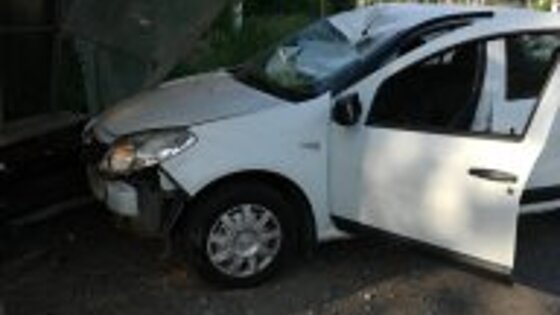 В Новокуйбышевске «Рено Сандеро» въехал в остановку. Очевидцы сделали видео