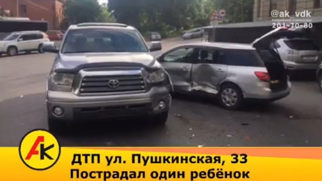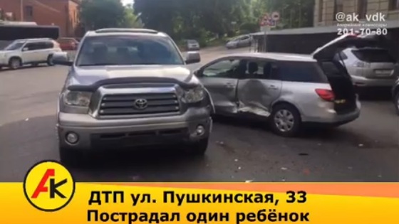 ДТП произошло 25 июня. Авария с участием двух иномарок произошла во Владивостоке на улице Пушкинская в районе дома №33, передает Prim.News со сылкой на инстаграм-паблик Аварийный Комиссар. «Nissan Wingroad при выезде со второстепенной дороги не пропустил Toyota Tundra. Ребёнка из Nissan госпитализировали медики», — говорится в сообщении.