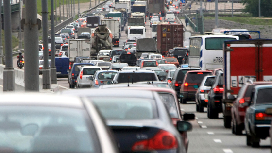 Движение транспортного потока на внешней стороне МКАД затруднено из-за опрокинутого большегруза,