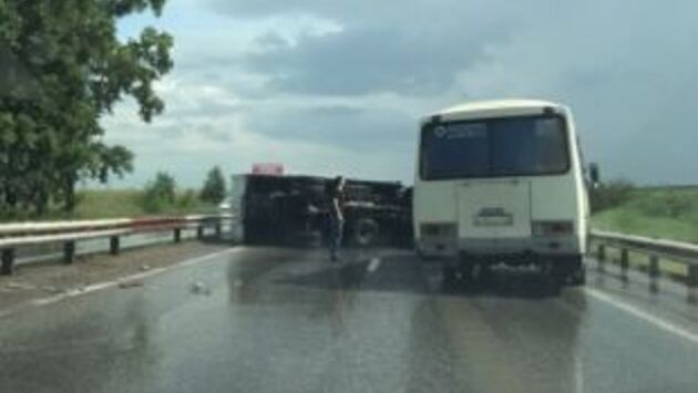 На трассе Железногорск - Красноярск перевернулся грузовик и перекрыл дорогу