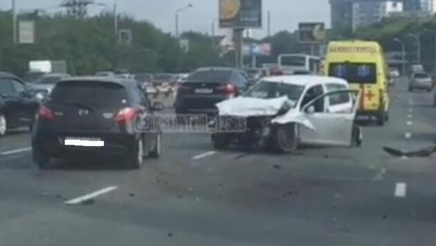 ДПС и «скорая»: авария на путепроводе во Владивостоке спровоцировала пробку