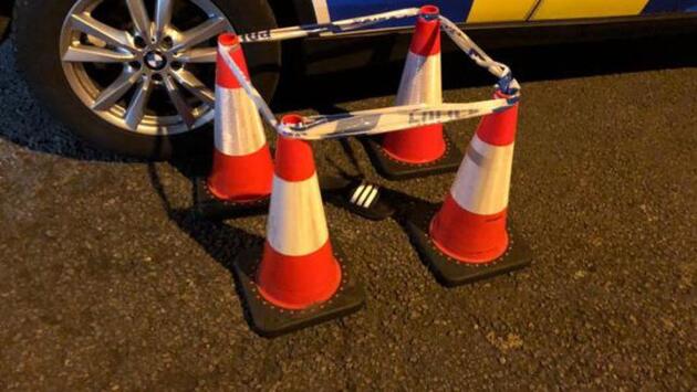 Британская полиция оцепила сандаль подозреваемого после того, как он скрылся с места аварии