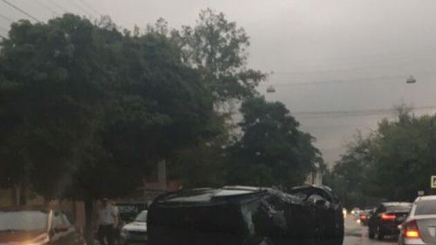 Неудачный обгон: в центре Симферополя перевернулся внедорожник