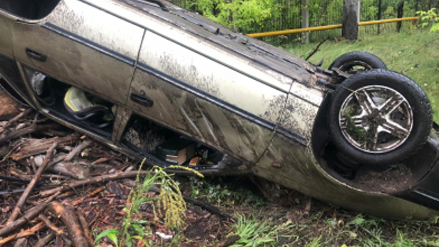 В Самарской области машина с двумя детьми приземлилась на крышу
