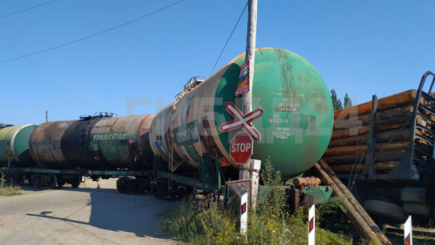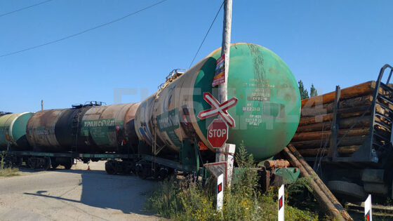 В Лесосибирске товарный поезд протаранил фуру с лесом