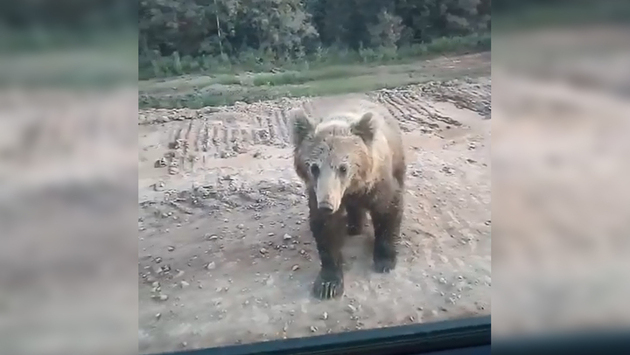 Медведь напал на машину собравшихся покормить его людей. Видео