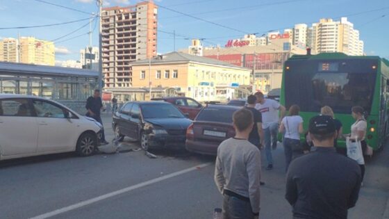 В Екатеринбурге на перекрестке 8 Марта-Щорса произошла массовая авария с участием трех машин и автобуса. Из-за ДТП перекрыты трамвайные пути в сторону Ботаники. По словам очевидца, виновник аварии — водитель Mitsubishi Lancer, который совершал разворот. В другом автомобиле, Hyundai Accent, в момент аварии находился ребенок. По предварительной информации, он отделался ушибами, — пишет Е1. Водитель Lancer сообщил, что получил водительские права в октябре и какое-то время не ездил. По его словам, он не справился с управлением. Еще одна свидетельница аварии рассказала, что она ехала с ребенком в 54-м автобусе. Автобус зацепило совсем немного. Женщина видела, как человек на черном автомобиле поворачивал и въехал в машины. На место ДТП прибыли реанимация, МЧС и ГИБДД. Обстоятельства аварии уточняются. По предварительным данным, в аварии никто не пострадал. Движение в Екатеринбурге сегодня и без того затруднено: из-за визита президента РФ Владимира Путина перекрыта часть городских магистралей. Фото: Сергей Мелентьев, vk.com Фото превью — Е1