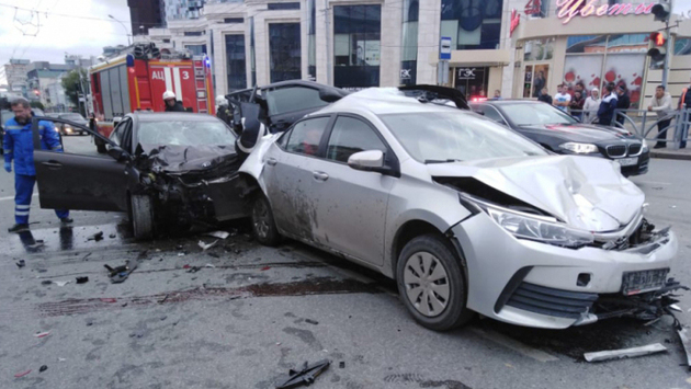 Два человека погибли, еще трое пострадали при столкновении пяти автомобилей в центре Екатеринбурга.