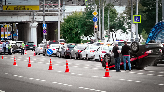 В интернете появилось видео аварии мотоциклиста и автомобиля Следственного комитета России, произошедшей на пересечении Комсомольского проспекта с Хамовнического Вала в Москве в четверг. Момент столкновения попал в объектив одной из камер, установленных на ближайшем к перекрестку здании. Ролик опубликован в сообществе автомобилистов "Синие ведерки" в Facebook. На нем видно, как машина СК на большой скорости выезжает на перекресток, пытаясь проскочить его. В этот же момент с примыкающей дороги стартует мотоциклист и происходит столкновение, в результате которого мотоцикл отбрасывает на 20 метров, а автомобиль СК переворачивается. В своих комментариях пользователи соцсетей отмечают, что иномарка двигалась на запрещающий сигнал светофора. При этом на запись не видно, был ли у нее включен проблесковый маячок. По информации РИА "Новости", на месте ДТП на обочине вскоре остановились еще несколько машин, принадлежащих Следственному комитету. Движение по двум полосам остановили, оставив для проезда только одну. О состоянии участников аварии пока не сообщалось.