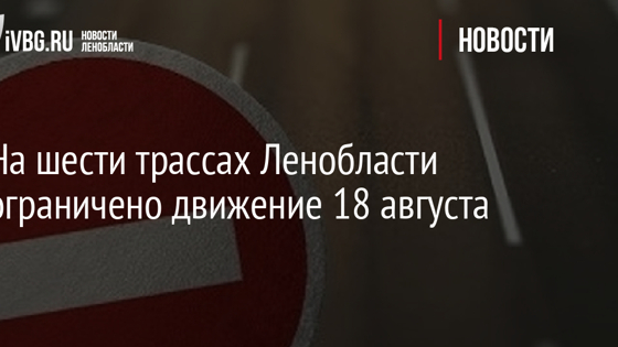 18 августа на шести трассах Ленобласти вводятся ограничения движения автотранспорта в связи с дорожными работами. Р-21 «Кола» Санкт-Петербург – Петрозаводск – Мурманск – Печенга – граница с Королевством Норвегия: км 12-179 – ограничение скорости движения в оба направления с 08:00 до 19:00. Причина – ремонт, выправка, установка дорожных знаков. М-10 «Россия» Москва – Тверь – Великий Новгород – Санкт-Петербург: км 593-674 – ограничение скорости движения в оба направления с 08:00 до 19:00. Причина – ремонт, выправка, установка дорожных знаков. 120 «Санкт-Петербургское южное – полукольцо» Кировск – Мга – Гатчина – Большая Ижора: км 106-149 – ограничение скорости движения в оба направления с 08:00 до 19:00. Причина – ремонт, выправка, установка дорожных знаков. А-114 «Вологда – Тихвин»: км 479-532 – ограничение скорости движения в оба направления с 08:00 до 19:00. Причина – ремонт, выправка, установка дорожных знаков. А-181 «Скандинавия» Санкт-Петербург – Выборг – граница с Финляндской Республикой: км 47-65 – ограничение скорости движения в оба направления с 08:00 до 20:00. Причина – механическая очистка наносного грунта из-под СБО; км 51 – ограничение скорости движения в сторону СПб с 08:00 до 20:00. Причина – замена СБО; км 76; 83 – ограничение скорости движения в оба направления с 08:00 до 20:00. Причина – очистка мостов через р. Грязновка и р. Великая; км 113-115 – ограничение скорости движения в оба направления с 08:00 до 20:00. Причина – нанесение дорожной разметки. А-181 «Выборг – Светогорск»: км 36+933 (мост через р. Вуокса) – ограничение скорости движения в оба направления с 08:00 до 24:00. Причина – капитальный ремонт моста; км 14-15 – ограничение скорости движения в оба направления с 08:00 до 20:00. Причина – заливка трещин. А/д А-181 «Магистральная»: км 191-195 – ограничение скорости движения в оба направления с 08:00 до 20:00. Причина – ликвидация деформаций асфальтобетонного покрытия. А-121 «Сортавала» Санкт-Петербург – Сортавала – автомобильная дорога Р-21 «Кола»: км 149-154 – ограничение скорости движения в оба направления с 08:00 до 20:00. Причина – реверсивное движение, реконструкция а/д; км 6 – ограничение скорости движения в сторону СПб с 08:00 до 15:00. Причина – замена СБО; км 31 – ограничение скорости движения в сторону Приозерска с 08:00 до 15:00. Причина – замена СБО; км 36-14 – ограничение скорости движения в сторону СПб с 08:00 до 15:00. Причина – нанесение дорожной разметки. Об ограничениях сообщают в ФКУ Упрдор «Северо-Запад».