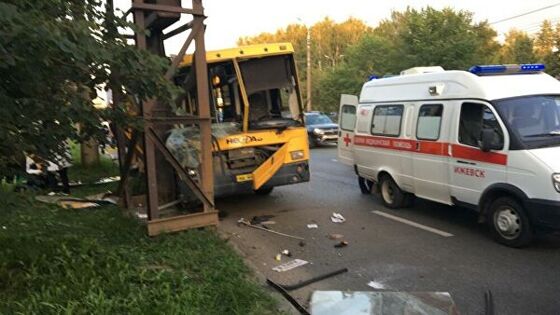В Ижевске автобус «Нефаз» с 35 пассажирами врезался в опору воздушного трубопровода, пострадали 17 человек. Об этом